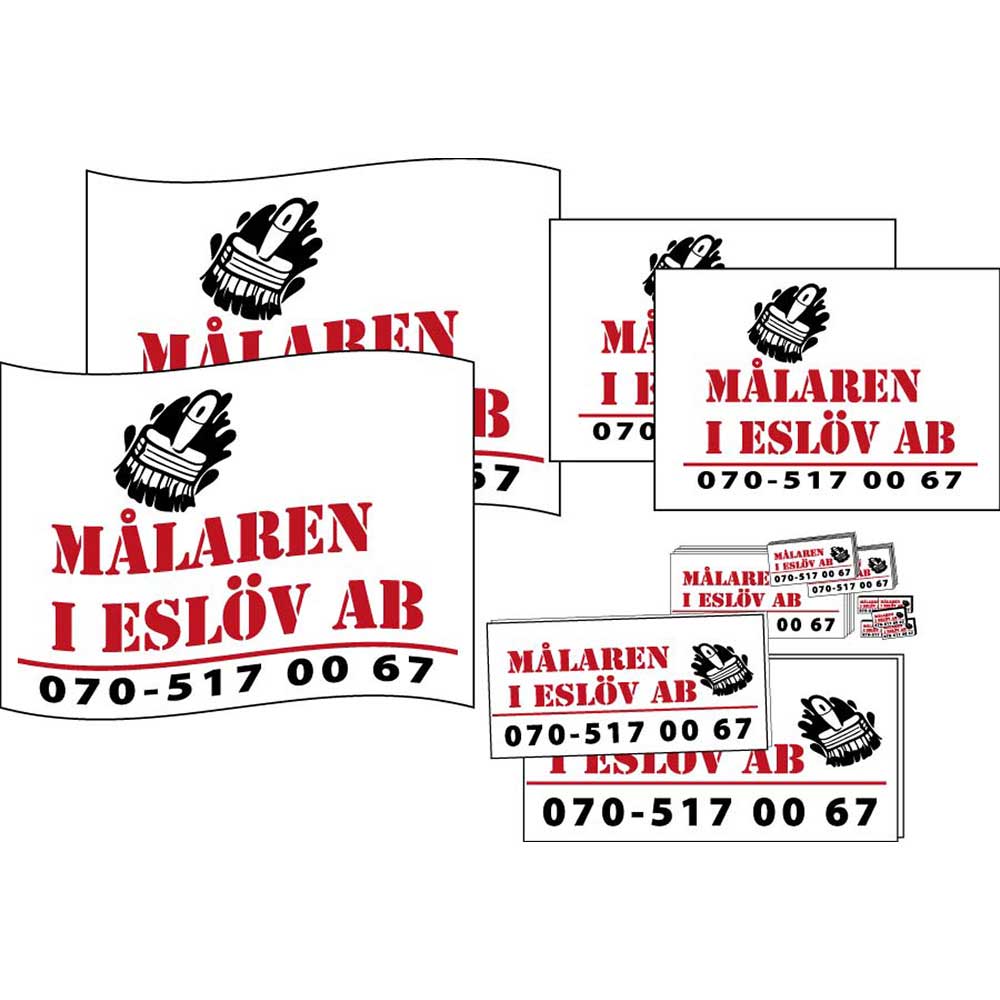 Vi erbjuder dig ett paket med skyltar, banderoller och dekaler till ett oslagbart pris