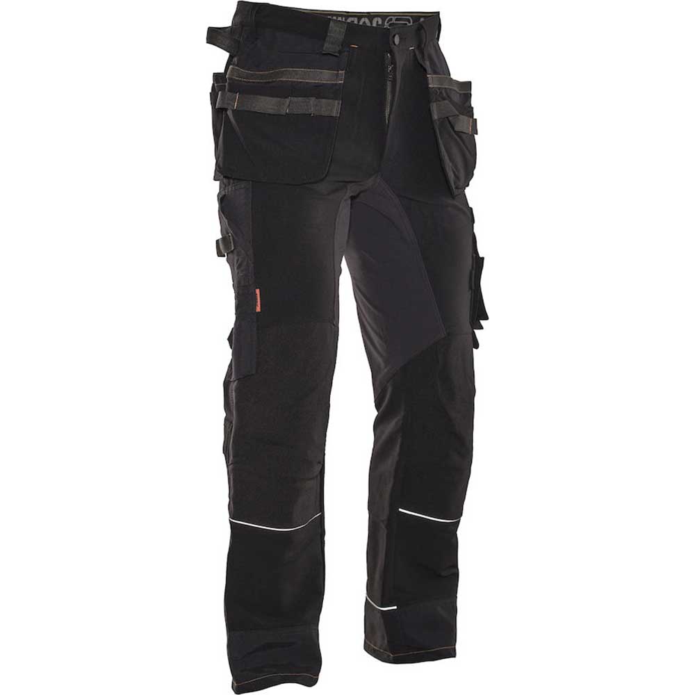 Förböjda knän med knäskyddsfickor i slitstark stretch Cordura® med3M´s reflexpasspoaler och två höjdnivåer.