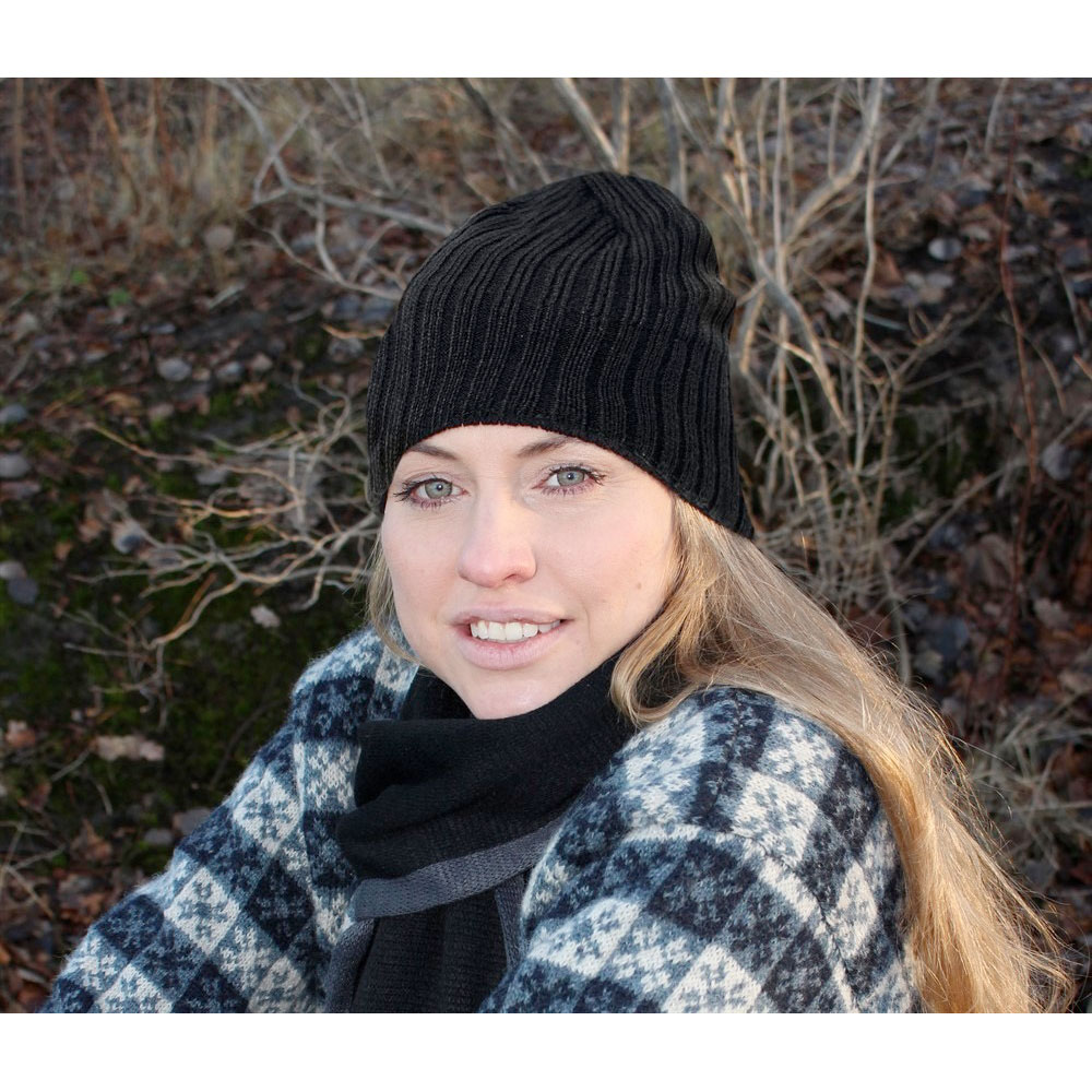 Snygg mössa med bred ribbstickning. Enkelstickad på toppen för bra ventilation och vindtätt foder runt öron-panna-nacke för ökad värme. Lämpar sig för brodyr eller sömnad av märke.