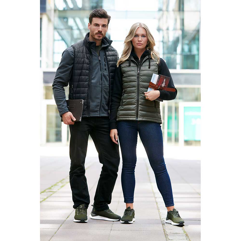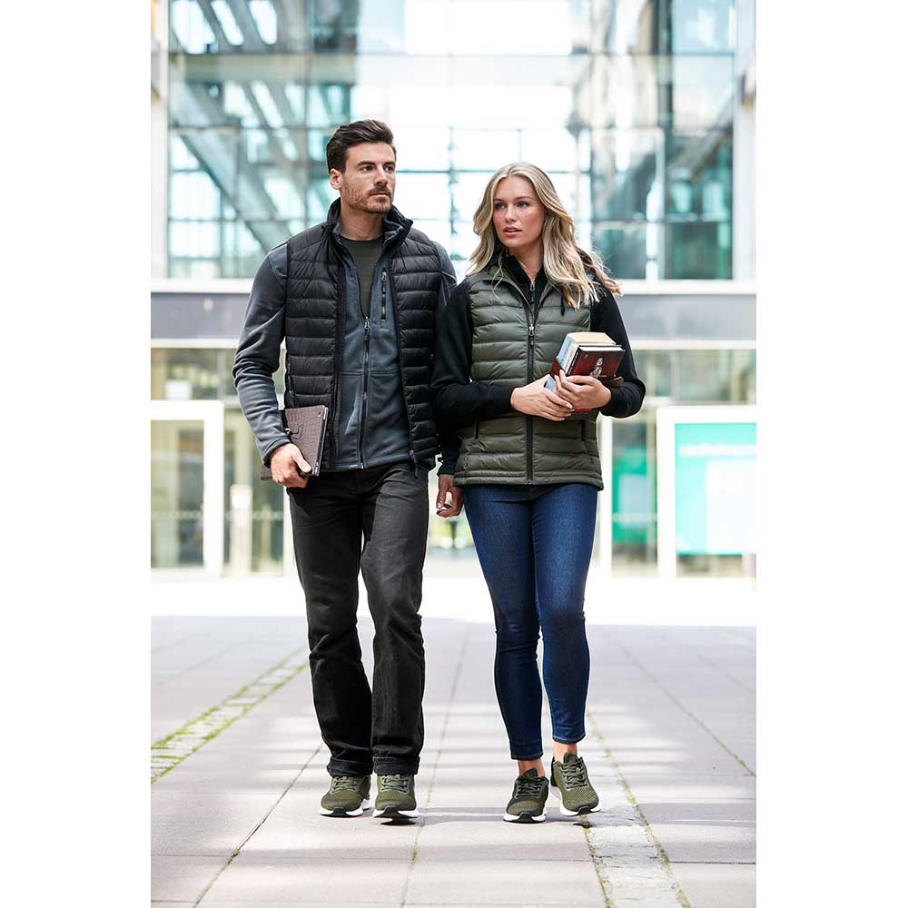 Uppdaterad lättviktsväst med tyg, vadd och även dragkedjor producerade av återvunnet material. Västen har två praktiska sidfickor med dragkedja. Elastiska band med heatprint i armhåla.