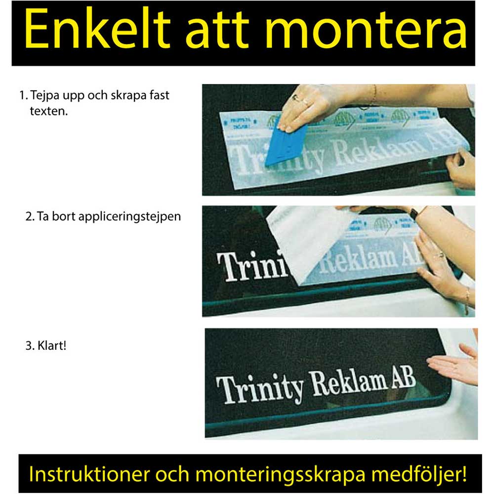 Texterna levereras på en appliceringstape och är relativt lätta att sätta, beroende på underlag.