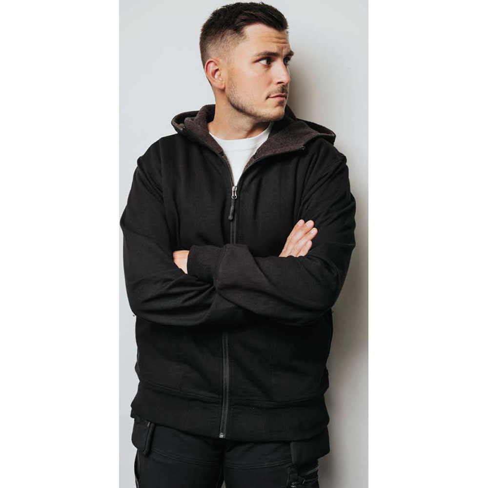Vår HC05 hoodiejacka har en hel dragkedja och en hög krage med mjuk pälsfiber på insidan.
