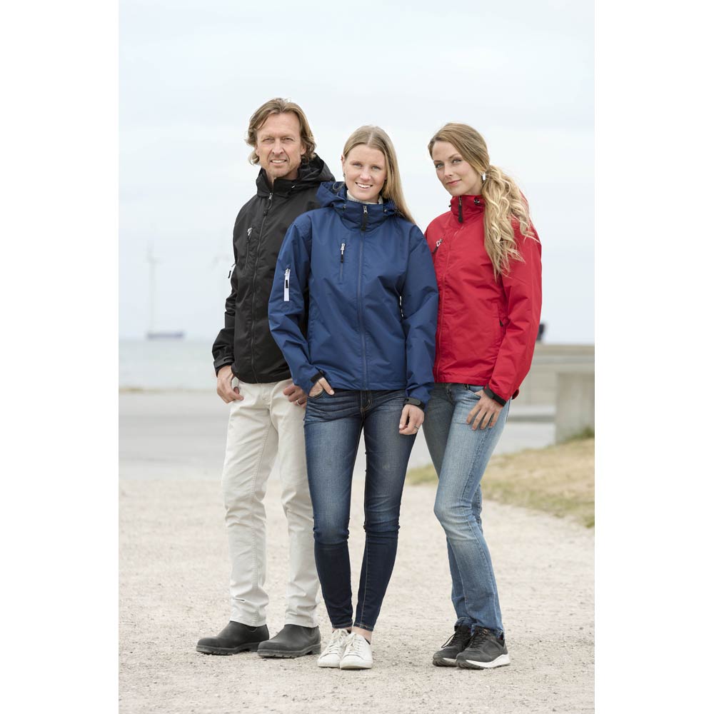 Avtagbar och justerbar huva. Ärmficka, bröstficka och sidfickor,